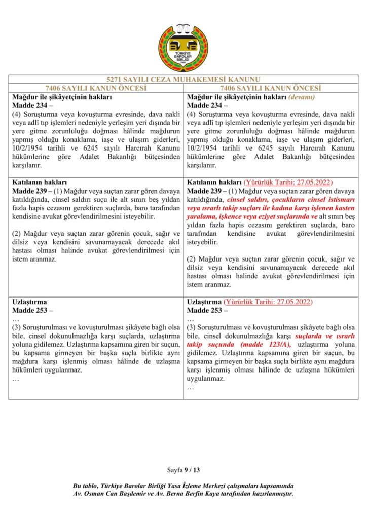 12/05/2022 tarihinde kabul edilen 7406 Sayılı kanunla 5271 Sayılı Ceza Muhakemesi Kanununda yapılan değişiklikler. 19 Haziran 2022 | No Comments | Ceza Hukuku