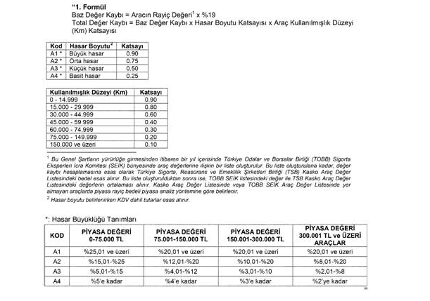 b-Değer kaybı aşağıdaki tabloya göre bilirkişi tarafından hesaplanır.